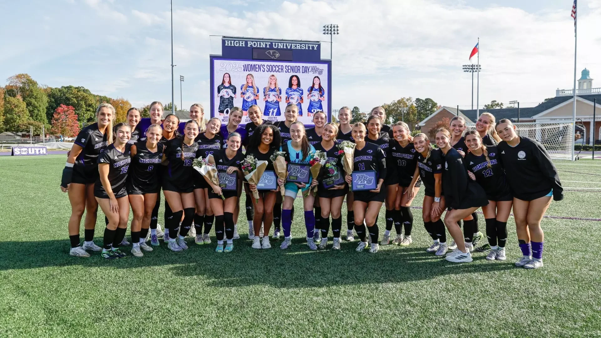 A story on HPU toughly battling out victory against Radford on Senior Night in front of Qubein Center record crowd of 7,202 fans